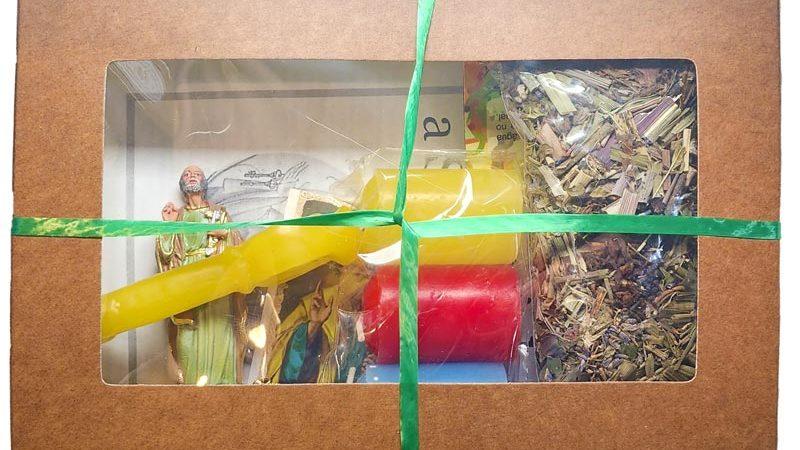 Conjunto especial São Pedro é dono das chaves do Céu, ele abre as portas para seus devotos. Esta simpatia serve para compra e venda da casa própria; compra e venda de imóvel comercial; compra ou venda de terreno; recebimento de aluguéis; para conseguir pagar o aluguel; para alugar imóvel e para a proteção da casa ou apartamento. Este conjunto é composto de: vela da chave, imagem de São Pedro, banho de ervas, vela da Santíssima Trindade, santinho de são Pedro. Acompanha folheto explicativo de como usar.