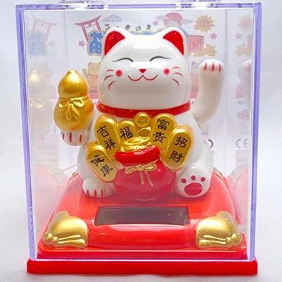 Gato Da Sorte Branco em acrílico com Energia Solar ( Maneki Neko )