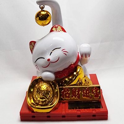 Gato Da Sorte Branco com Energia Solar ( Maneki Neko )