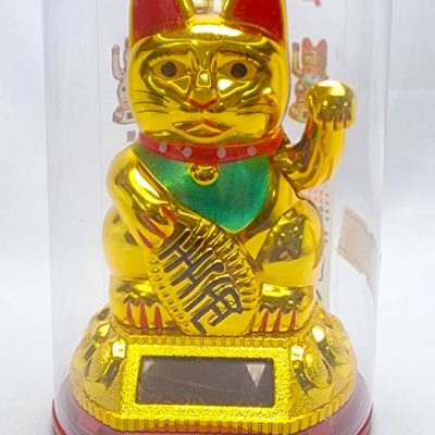 Gato Da Sorte Dourado com Energia Solar ( Maneki Neko )